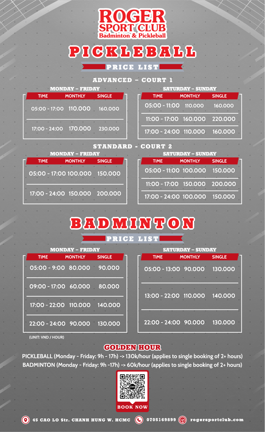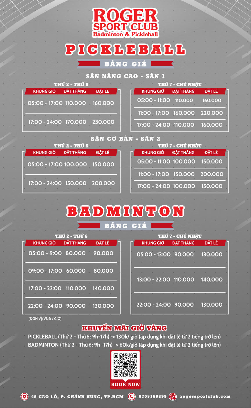 Là điểm đến thể thao uy tín dành cho những ai yêu thích vận động, rèn luyện sức khỏe và kết nối cộng đồng. CLB được xây dựng với không gian rộng rãi, thoáng mát, mặt sân đạt chuẩn, phù hợp cho cả người mới bắt đầu lẫn người chơi lâu năm.